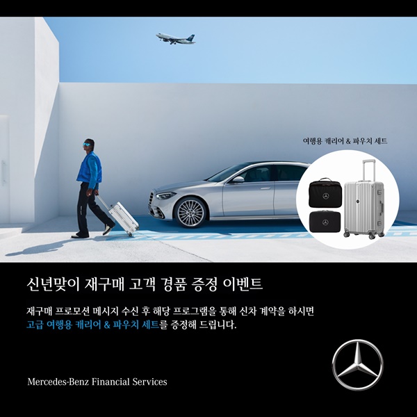 또 재이용 고객 중 메르세데스 벤츠 파이낸셜 서비스 코리아가 발송하는 본 프로모션 안내 메시지를 수신한 고객에게는 여행용 캐리어와 파우치 세트로 구성된 고급 트래블 키트를 추가 증정할 예정이다.