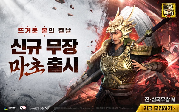 (서울=NSP통신) 이복현 기자 = 넥슨(대표 이정헌)이 모바일 수집형 액션 RPG 진‧삼국무쌍M(개발 네오바즈)의 신규 무장 마초와 함께 다양한 콘텐츠 업데이트를 실시했다.