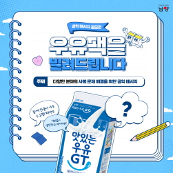 대한민국 소비자 누구나 참여할 수 있는 이번 공모전은 우유팩 측면에 환경보호, 안전사고 예방, 취약계층 지원사업 등 다양한 사회 문제 해결을 위한 공익 메시지를 담는 캠페인이다.