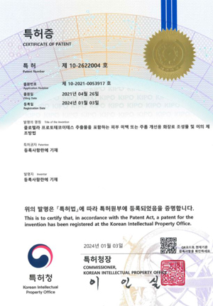 (서울=NSP통신) 이복현 기자 = 화장품소재 및 원료의약품 전문기업 대봉엘에스(대표 박진오)가 ‘미세조류’를 활용한 펩타이드 화장품 소재 특허 등록(클로렐라 프로토테코이데스 추출물을 포함하는 피부 미백 또는 주름 개선용 화장료 조성물, 등록번호 10-2622004)을 완료했다,