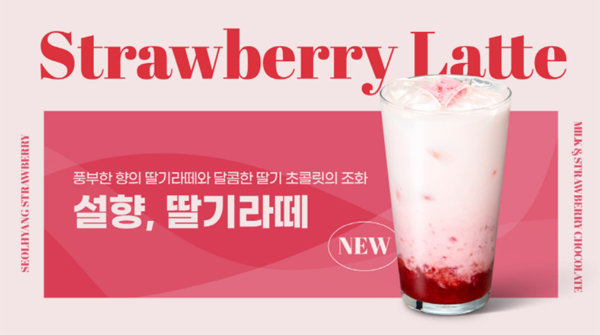 이번에 출시한 설향, 딸기라떼는 100% 국내산 설향 딸기를 사용해 풍부한 딸기 향과 달콤한 딸기 초콜릿의 조화가 돋보이는 것이 특징이다.