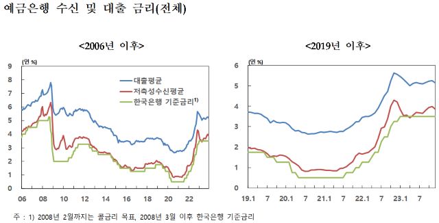 수신금리는 순수저축성예금 금리가 0.13%p 하락, 시장형금융상품이 0.16%p 하락했다. 대출금리와 저축성수신금리 차는 1.29%p로 전월 대비 0.02%p 확대됐다.