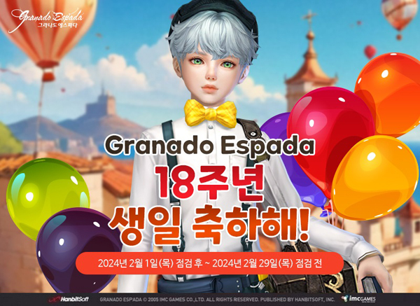 그라나도 에스파다는 2월1일 정기점검 후부터 ‘Granado Espada 18주년 생일 축하해’ 이벤트를 전개한다.