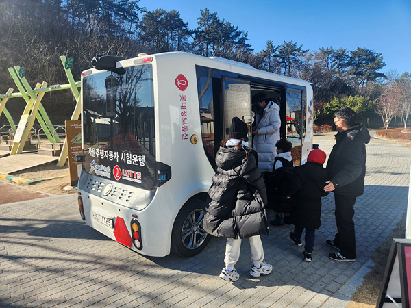 이번 기획전에서 롯데정보통신의 자율주행셔틀은 국립부산과학관 내 야외광장을 왕복하면서 탑승객에게 미래 모빌리티 기술인 자율주행을 소개했다.