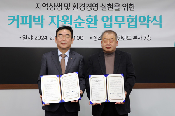 최철규 대표 직무대행은 “커피박 자원순환 업무협약으로 환경을 지키고 지역사회와 상생하는 새로운 사업모델을 구축하게 돼 기쁘게 생각한다”며 “친환경과 자원선순환을 선도하는 대표 기업으로서 지속가능한 동반성장 생태계 구축을 위해 최선의 노력을 다하겠다”라고 강조했다.
