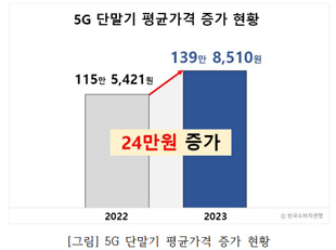 국내시판 5G 단말기 164개의 평균가격은 139만원이었는데 이는 지난해 조사결과에 비해 24만원이 상승해 소비자의 부담은 지속적으로 늘어나고 있었다.