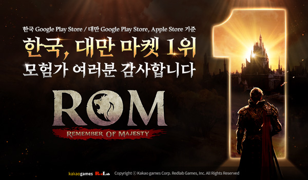 (서울=NSP통신) 이복현 기자 = 레드랩게임즈(대표 신현근)가 개발하고 카카오게임즈(대표 조계현)와 함께 글로벌 동시 서비스를 진행하는 MMORPG 롬(ROM: Remember Of Majesty)이 한국 구글 플레이 스토어와 대만 양대 마켓 인기 순위 1위에 올라섰다.
