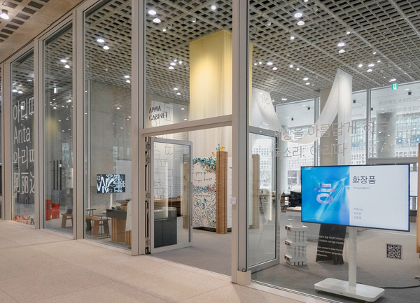 아모레퍼시픽 본사 1층에 마련된 이번 전시는 지난해 진행한 아모레성수와 아모레부산 전시에 이어 세 번째로 진행하는 ‘아리따’ 글꼴 전시다.