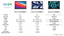 이번 VS검색 비교는 전작인 2020 맥북에어(M1모델), 2022 맥북에어(M2모델)와 진행됐으며, 13인치형 256GB SSD 사양을 공통기준으로 했다.