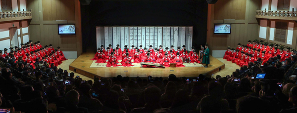 마지막 순서는 이번 공연의 최고 백미인 수제천 구음공연이 펼쳐졌다. 양주풍류악회 100번째 정기공연을 축하하기 위해 명인명창들을 중심으로 국악인 100명이 무대에 함께 올랐다.