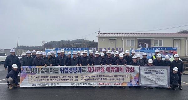 한편 캠페인 활동은 ▲근로자와 함께하는 위험성 평가 실천 ▲중흥그룹 재해통계(Safety Aligo)를 활용한 재해사례 반영 ▲위험성 평가 전파 활동과 안전대책 이행 확인 강화 ▲돌관 작업에 대한 수시평가 실시 등으로 진행된다.