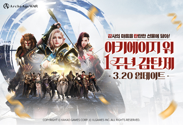 먼저 오는 3월 20일로 예정된 1주년 기념 업데이트는 방대한 신규 콘텐츠 및 이벤트를 보유해 아키에이지 워 이용자에게 새로운 즐거움을 전달할 예정이다.