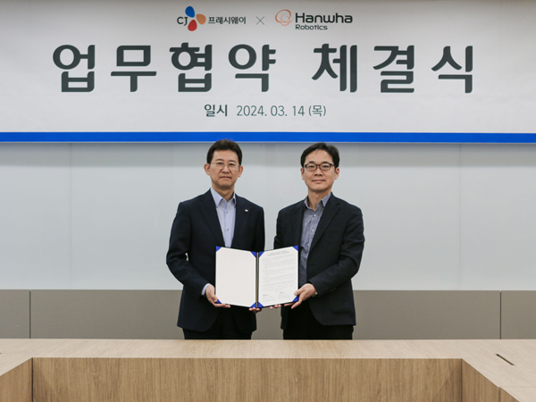 한화로보틱스는 자체 보유 기술을 바탕으로 식음 서비스 관련 로봇 및 자동화 솔루션을 개발하고, CJ프레시웨이는 기술 검증(PoC)을 위한 테스트 베드 제공과 미래형 밸류체인 모델 수립을 맡는다.