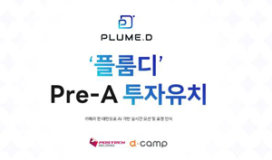 (서울=NSP통신) 이복현 기자 = 한국콘텐츠진흥원(원장 조현래, 이하 콘진원) 뉴콘텐츠기업지원센터 입주기업 플룸디(대표 이경민)가 포스텍홀딩스(포항공과대학교기술지주) 및 디캠프(은행권청년창업재단)로부터 Pre-A 투자 유치를 완료했다고 밝혔다.