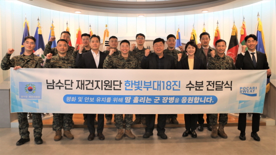 (서울=NSP통신) 박유니 기자 = 동아오츠카(대표 박철호)는 지난 14일 한빛부대 18진에 ‘포카리스웨트 분말’을 전달했다.
