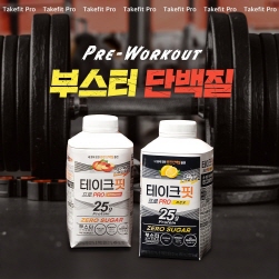 특히 테이크핏 프로는 일반적으로 운동 후에 먹는 단백질 음료와는 달리 운동 전부터 마시는 ‘부스터 단백질’ 콘셉트로, 카페인과 아르지닌을 함유하고 있다. 이와 함께 모든 원료가 물에 완전히 용해되어 맑고 투명한 것은 물론, 미네랄 4종(칼륨, 칼슘, 나트륨, 마그네슘)으로 수분 충전 및 갈증 해소에 도움을 줄 수 있다.