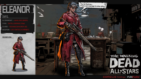 워킹데드: 올스타즈는 펀플로가 개발하고 컴투스홀딩스가 글로벌 서비스하는 수집형 RPG다. 좀비 신드롬을 일으킨 스카이바운드 엔터테인먼트의 워킹데드(The Walking Dead) IP를 활용해 포스트 아포칼립스 상황에서의 생존을 주제로 흥미진진한 스토리를 펼쳐가고 있다.
