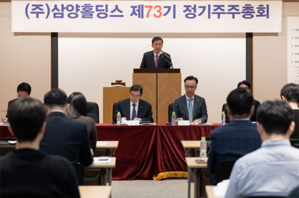 (서울=NSP통신) 이복현 기자 = 삼양홀딩스(대표 엄태웅, 이영준)가 22일 서울 종로구 삼양그룹 본사 1층 강당에서 제73기 정기주주총회를 개최했다.