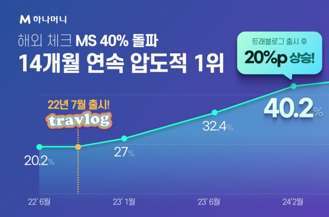 이같은 성과는 하나카드의 트래블로그가 이끌었다. 트래블로그 출시 전인 2022년 6월에 비해 해외 체크카드 이용금액은 3배 증가했으며 점유율은 20%p 상승했다. 트래블로그는 하나머니 앱(App)을 통해 무료로 환전하고 트래블로그 카드로 결제 및 출금 수수료 없이 전 세계에서 이용 가능한 하나금융그룹의 해외여행 서비스다.