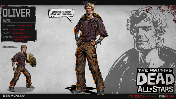 워킹데드: 올스타즈는 펀플로가 개발하고 컴투스홀딩스가 글로벌 서비스하는 수집형 RPG다.