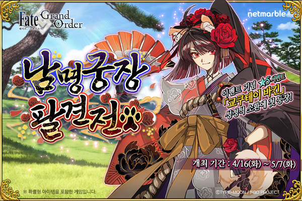 (서울=NSP통신) 이복현 기자 = 넷마블(대표 권영식, 김병규)이 모바일 RPG 페이트/그랜드 오더(이하 페그오)에서 ‘남명궁장 팔견전’ 이벤트를 4월 16일부터 5월 7일까지 실시한다.