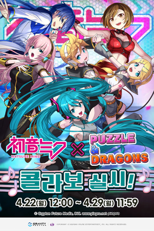 (서울=) 이복현 기자 = 모바일 콘텐츠 기업 그라비티 네오싸이언의 모바일 퍼즐 액션게임 퍼즐앤드래곤(개발 겅호 온라인 엔터테인먼트)이 하츠네 미쿠와 콜라보레이션 이벤트를 실시한다.