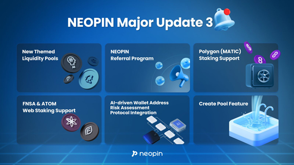 (서울=NSP통신) 이복현 기자 = 탈중앙화 금융 플랫폼 네오핀이 최근 RWA(Real World Asset, 실물연계자산) 및 AI(Artificial Intelligence, 인공지능) 등의 디파이(DeFi, 탈중앙화 금융) 상품 출시를 골자로 하는 세 번째 메이저 업데이트를 단행했다.