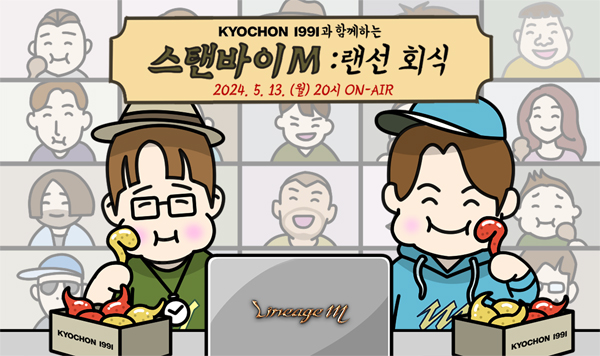 이번 생방송은 온라인 회식 콘셉트로 진행된다. 엔씨는 대표 치킨 브랜드 교촌치킨과 함께 리니지M 이용자 7000명에게 교촌치킨 반반점보윙(레드‧허니) 쿠폰을 선물한다.