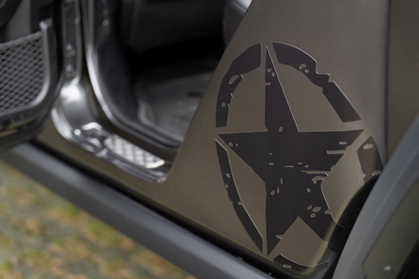 아미 스타 패키지는 후드와 양 도어 사이드 바디(Door Side-body)에 지프의 전통과 역사를 상징하는 별 모양이 거친 질감으로 표현된 데칼로 시선을 사로잡는다. 여기에 지프의 순정 액세서리인 무광의 새틴 블랙 그릴(Satin Black)을 적용, 한층 강인하면서도 터프한 외관을 완성했다.