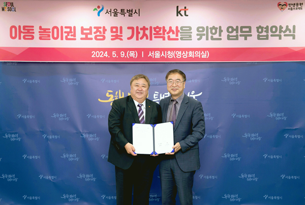 (서울=NSP통신) 이복현 기자 = KT(대표 김영섭)가 9일 서울시와 함께 서울시청에서 ‘아동 놀이권 보장 및 가치확산을 위한 업무협약’을 체결했다.