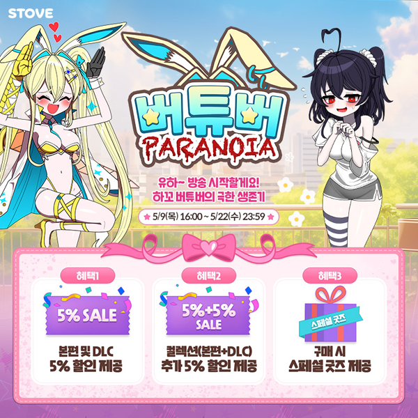 스토브는 버튜버 파라노이아를 5% 할인된 가격에 선보이며 특전으로 캐릭터 키링을 지급한다. 백(魄)의 소각자 구매자에게 출시 기념 월페이퍼 DLC를 제공한다. 이외 스토브는 참신하고 개성 넘치는 인디 게임을 선별해 프로모션을 진행한다.