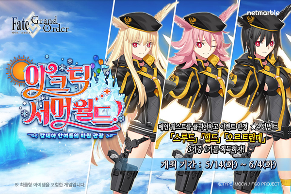(서울=NSP통신) 이복현 기자 = 넷마블(대표 권영식, 김병규)이 모바일 RPG 페이트/그랜드 오더(이하 페그오)에서 ‘아크틱 서머 월드! ~칼데아 한여름의 마원 관광~’ 이벤트를 오늘 오후 5시부터 시작한다.