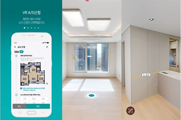 입주 고객은 VR을 통해 동일한 평형의 내부 전경을 실물처럼 둘러볼 수 있으며 가구 배치나 인테리어를 위해 원하는 부위의 길이 측정도 가능하다.