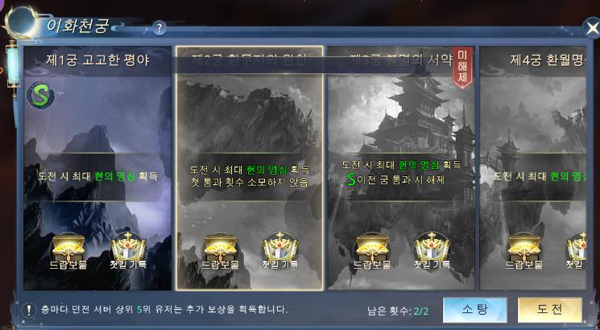 이번 업데이트를 통해 ▲만상서원 ▲이화천궁 ▲길드 미션이 추가돼 플레이어들은 매일 이들 던전에 도전해 희귀 아이템을 획득할 수 있다.
