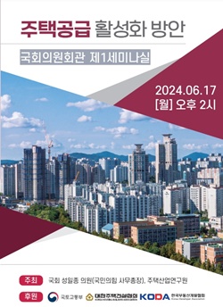 (서울=NSP통신) 강은태 기자 = 성일종 국회의원과 주택산업연구원(대표 서종대)은 오는 17일 오후 2시 국회의원회관 제1세미나실에서‘주택공급 활성화 방안’세미나를 개최한다.