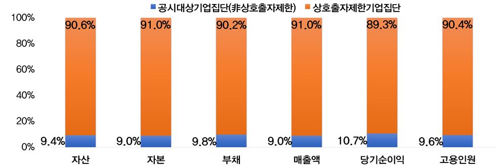 대기업집단 전체(상호출자제한기업집단+공시대상기업집단)에서 차지하는 공시대상기업집단의 비중 역시 낮은 것으로 드러났다.