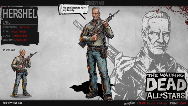이번 업데이트에서는 신규 생존자 허셜이 등장한다. 허셜은 ‘워킹데드’ 코믹스 원작의 주요 인물로 농장을 운영하며 가족을 지키기 위해 헌신하는 캐릭터다.