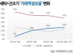 다나와 자료에 따르면 6월 기준 전체 세탁가전 시장에서 올인원 세탁건조기의 거래액 점유율은 16.2%로 일반세탁기(12.7%)와 의류건조기(11.4%)를 넘어섰다.