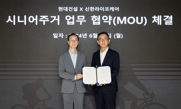 현대건설은 24일 서울 종로구 계동에 위치한 현대건설 본사에서 신한라이프케어와 시니어 주거 모델 개발을 위한 업무협약을 체결했다.
