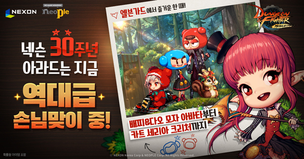 (서울=NSP통신) 이복현 기자 = 넥슨(공동 대표 김정욱‧강대현)이 창립 30주년을 기념해 던전앤파이터, 던전앤파이터 모바일에 릴레이 이벤트를 실시했다.