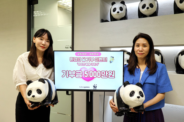 카카오게임즈는 지난 6월 환경의 달을 맞아 프렌즈팝콘과 프렌즈타운에서 이용자 참여형 기부 이벤트인 ‘라이언 꿀벌 구하기’를 실시했으며 이벤트 기간 중 이용자가 소비한 총 하트 수가 2024만 개를 달성함에 따라 기부금 총 5000만원을 국제 비영리 자연보전기관 WWF에 전달했다.