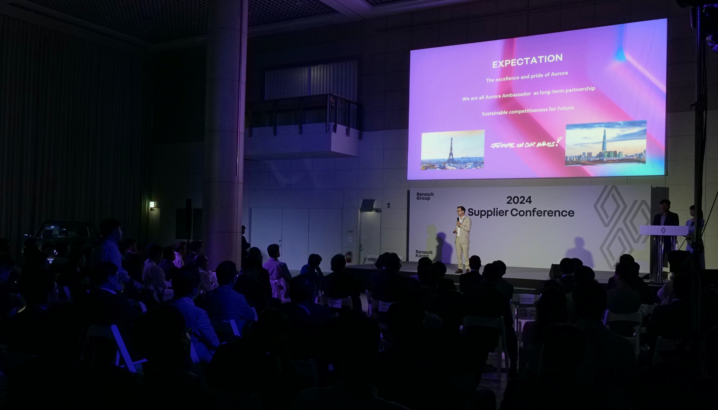 2024 서플라이어 컨퍼런스에서는 이날 오전 ‘2024 부산모빌리티쇼’에서 최초 공개된 뉴 르노 그랑 콜레오스를 협력사 관계자들에게 소개하는 순서도 포함됐다. 그랑 콜레오스는 ‘매일을 함께하는 차(Voiture à vivre)’라는 르노의 DNA를 바탕으로 부산공장과 협력사들의 뛰어난 생산 노하우와 품질 경쟁력 아래 탄생한 르노코리아의 D SUV 신차다.