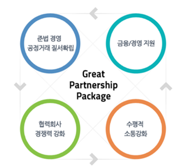 한편 GS건설은 협력업체와 상호협력 및 동반성장을 위해 자체적으로 ‘Great Partnership Package’를 구성해 공정한 하도급 거래 질서 확립을 위한 프로그램을 추진중이다. Great Partnership Package는 협력업체와 지속 가능한 동반성장을 위한 종합적인 지원체계로 ▲ 준법 경영 및 공정거래 질서 확립 ▲금융·경영 지원 ▲협력 회사 경쟁력 강화 ▲수평적 소통강화로 총 4개 분야로 구성돼 공정경쟁 낙찰제 운영, 협력사 실무자 교육지원, 경영지원금, 상생펀드 등을 통한 금융 지원, 각종 간담회를 통한 소통강화 및 우수협력사 포상 등 협력사에 실질적으로 도움이 되는 제도들을 운영 중이다.