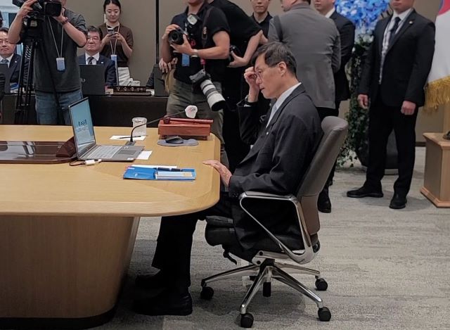 신성환 위원은 이 총재의 입장 전 옆자리 김종화 위원과 “본격적인 뭔가가 시작되는 느낌”이라는 대화를 나눴다. 앞서 최근 금통위에서 기준금리에 대해 만장일치로 동결이 결정됐음에도 한은 포워드가이던스를 통해 3차례 연속 3개월 후 금리 인하 전망이 나온 바 있다. 금융권 안팎에서는 해당 의견을 제시한 위원으로 신성환 위원을 지목하고 있다.