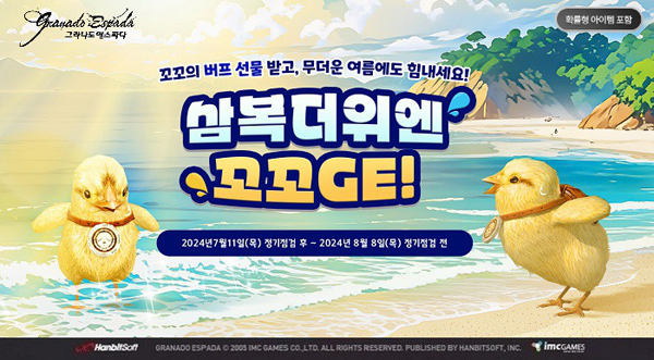 그라나도 에스파다에 따르면 7월11일 점검 후부터 8월8일 점검 전까지 삼복더위엔 꼬꼬GE 이벤트를 전개한다.