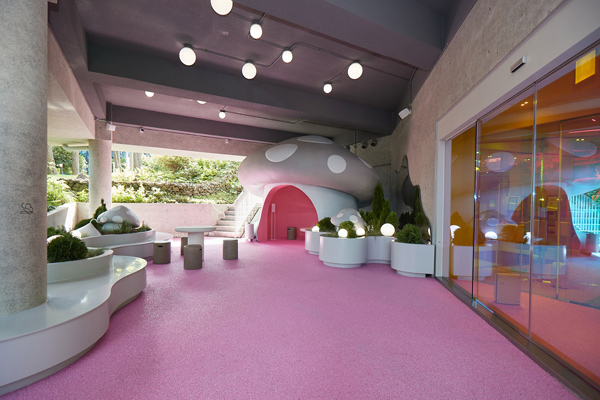 카페 메이플스토리는 핑크 컬러 테마의 카페 식음 공간과 함께 몬스터 형태의 오브제로 세련된 분위기를 연출한 테라스, 포토 스팟이 마련된 굿즈존 등으로 구성됐다.