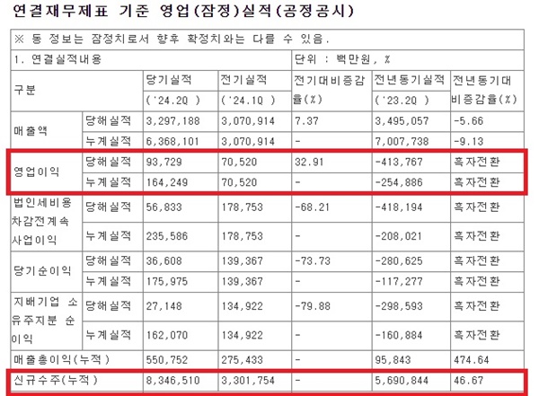 상반기 영업이익은 1642억원으로 전년 동기 대비 흑자 전환했고 2분기 영업이익은 937억원으로 직전 분기 대비 32.9% 증가하며 어려운 경기 상황에도 안정적인 사업환경을 구축해 나가는 모습을 보였다.