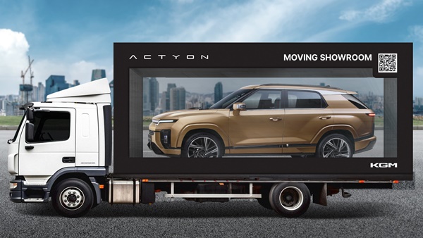 ‘액티언 무빙 쇼룸(ACTYON MOVING SHOWROOM) 이벤트’는 액티언 실물 차량을 무빙 쇼룸에 싣고 인구 밀집 지역 및 주요 관광지를 순회하며 고객들을 찾아가는 행사로 고객들은 본격적인 출시 이전에 액티언의 다이내믹하고 스타일리시한 디자인을 가장 먼저 확인할 수 있다.