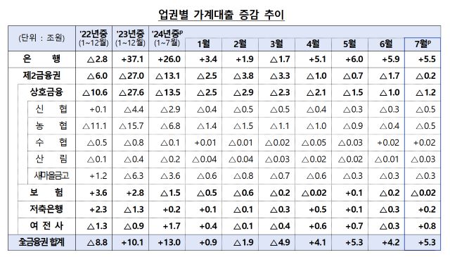 7월 가계대출 5조 3000억원 증가…금융당국 “경각심 가져야”