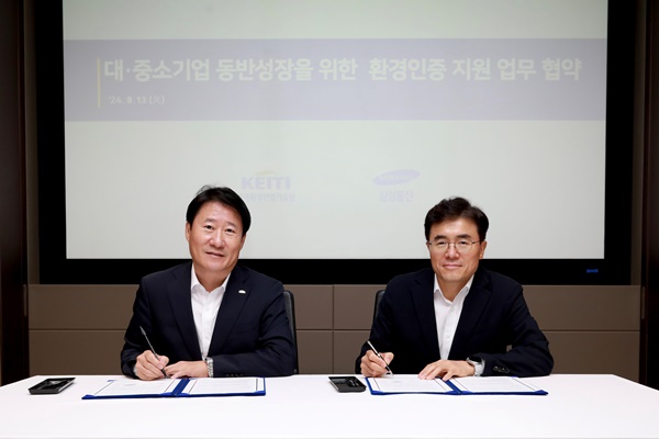 삼성물산과 한국환경산업기술원은 8월 13일 서울 강동구 삼성물산 건설부문 본사에서 대∙중소기업 동반 성장을 위한 환경성적표지 인증 지원 업무 협약을 체결한다. 환경성적표지 제도는 제품과 서비스 전 과정에 대한 환경영향 정보를 표시하는 제도로 이번 협약은 동반성장 차원에서 중소기업의 국제 환경 규제 역량을 제고 하는데 기여할 것으로 기대된다.